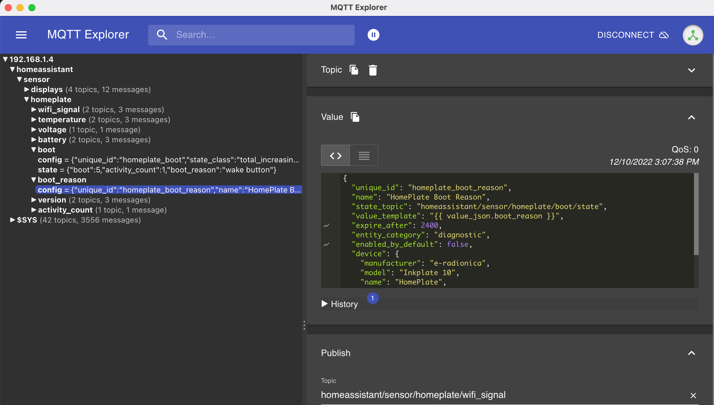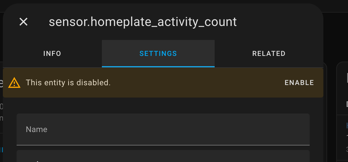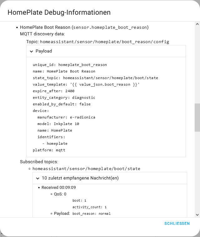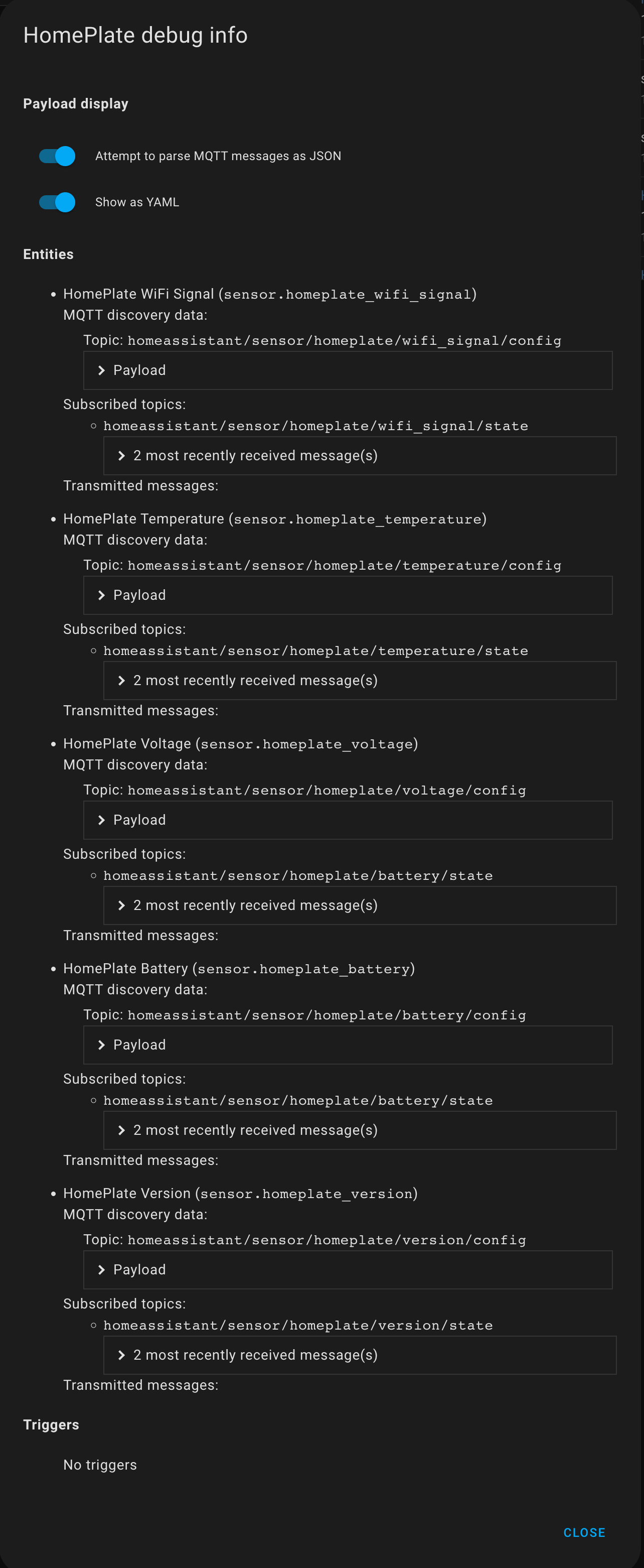 I had this problem once when there were a leftover device inside HA. I had to delete it with the three dots next to "MQTT Info", then restart the homeplate and reenable the diagnostic sensors. |
