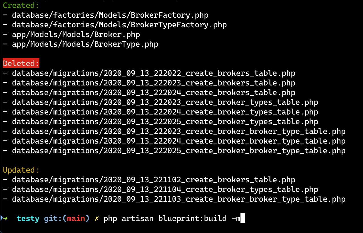 flag, Blueprint will generate duplicate migrations with different timestamps.If you then run
