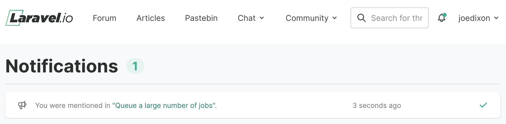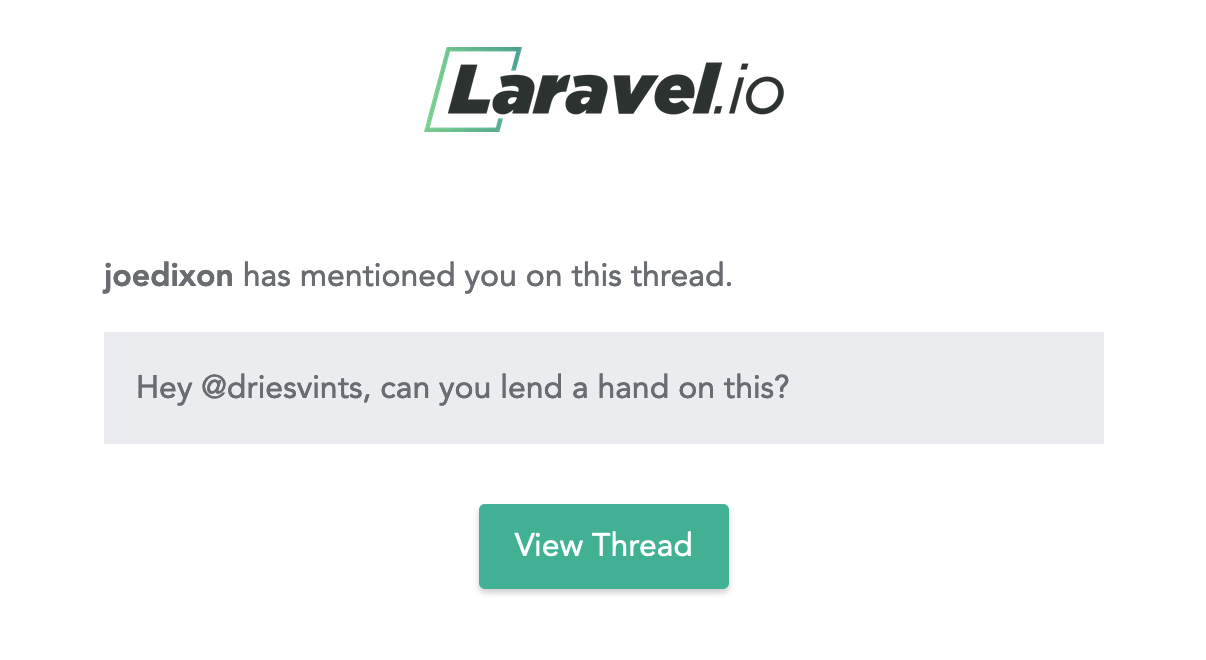 WERE username LIKE 'dries%'). Results are merged with participants, but participants are always prioritised over other users if the filter matches. The dropdown is navigable by both mouse and keyboard.When a user is mentioned, they are subscribed to the thread and notified by email. They will not be notified again should an existing thread or reply be updated.