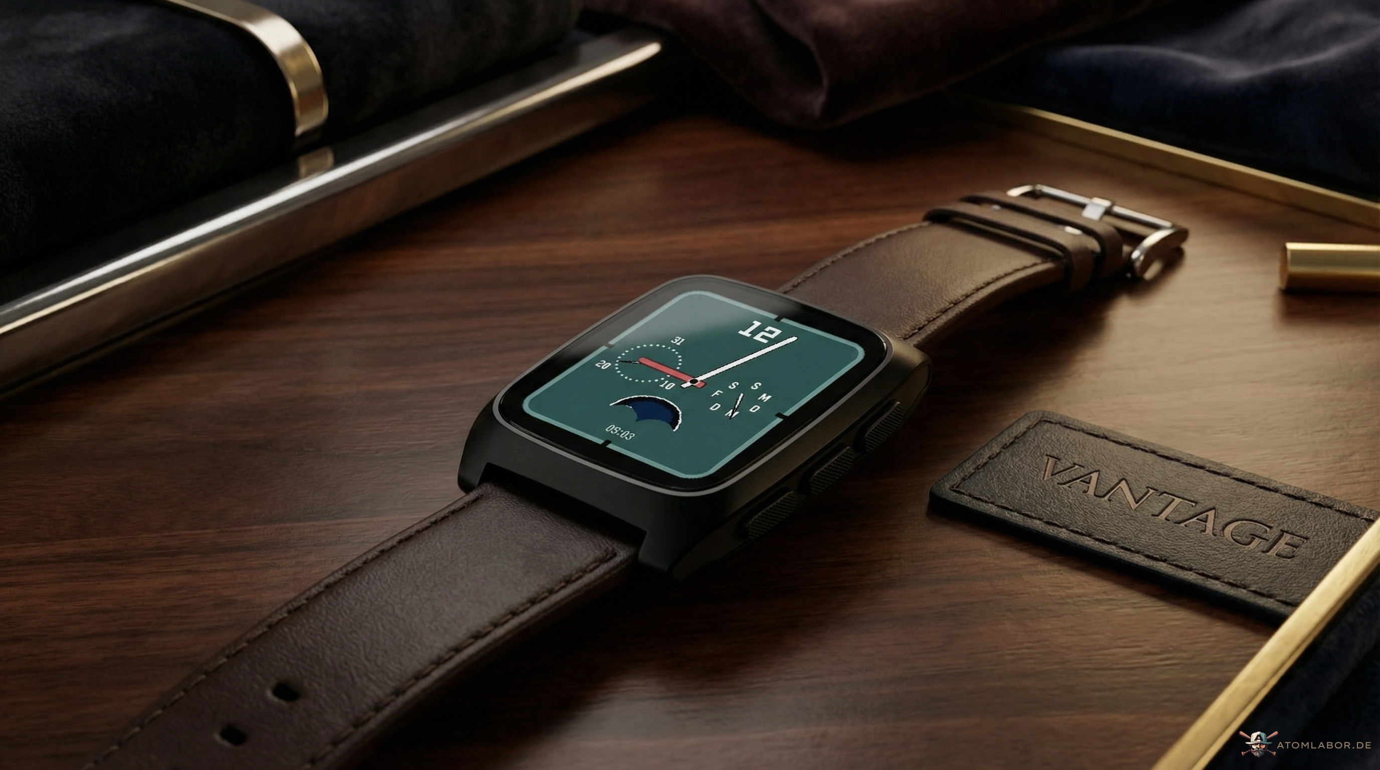 VANTAGE is a high-precision, native C watchface designed exclusively for the Pebble Time 2 (Emery). It features a sophisticated analog design with "Midnight Green" aesthetics and deep system integration.