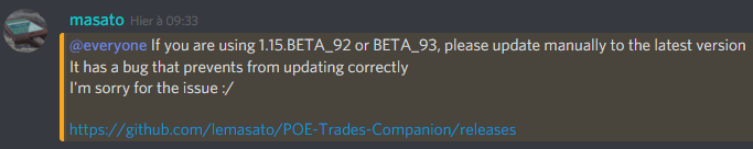 Download POE-Trades-Companion-AHK.zip if the executable is being flagged by your antivirus. Extract the zip and run POE Trades Companion.ahk. You do not need to compile the script, you can simply run the AHK file just like you would do with TradeMacro.