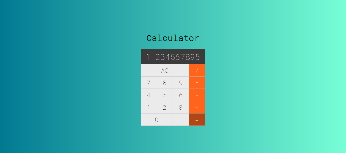 Calculator A simple calculator made using vue. Screenshots Author 👤 Leonardo Nunes de Oliveira Github: https://github.com/leo123nunes LinkedIn: https://www.linkedin.com/in/leonunesoliveira/ Instagram: https://www.instagram.com/leo.nunesoliveira/ Facebook: https://www.facebook.com/leonardonunes.oliveira.1/
