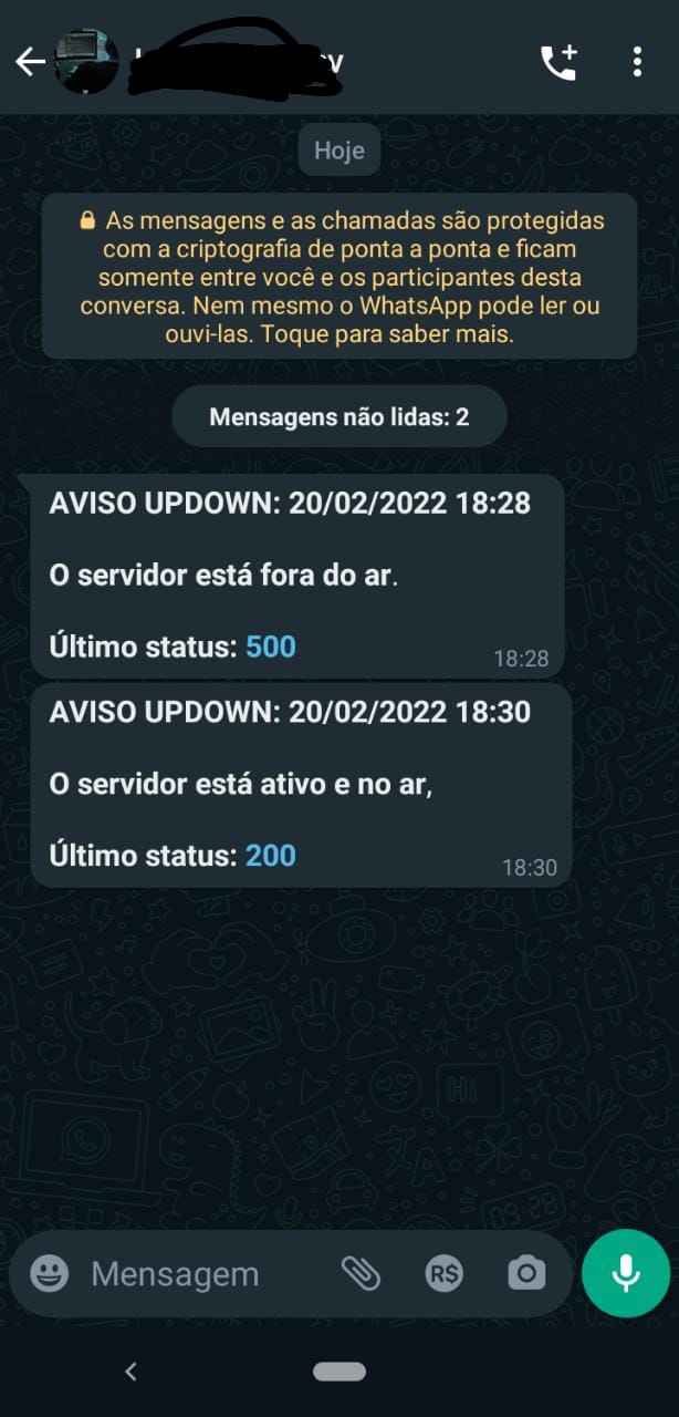 Seja notificado no WhatsApp caso algum site monitorado no Updown.io fique fora do ar