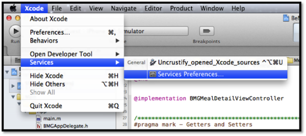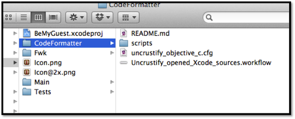 - Xcode shortcut-based code formatting: a shortcut to format modified sources in the current workspace