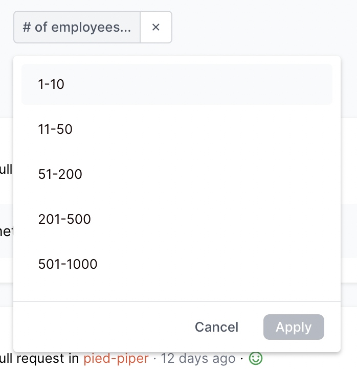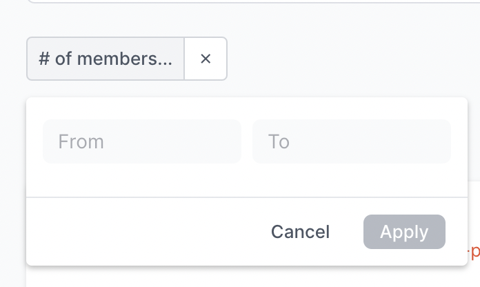 # employeesand# membersfilter fieldsdefaultOperatorprop to Filter type number so that it does not show the operator selector if the defaultOperator is set to between.betweenlogic inbuild-api-payload:betweenoperatorgteoperatorlteoperatorScreenshots (front-end changes only)
