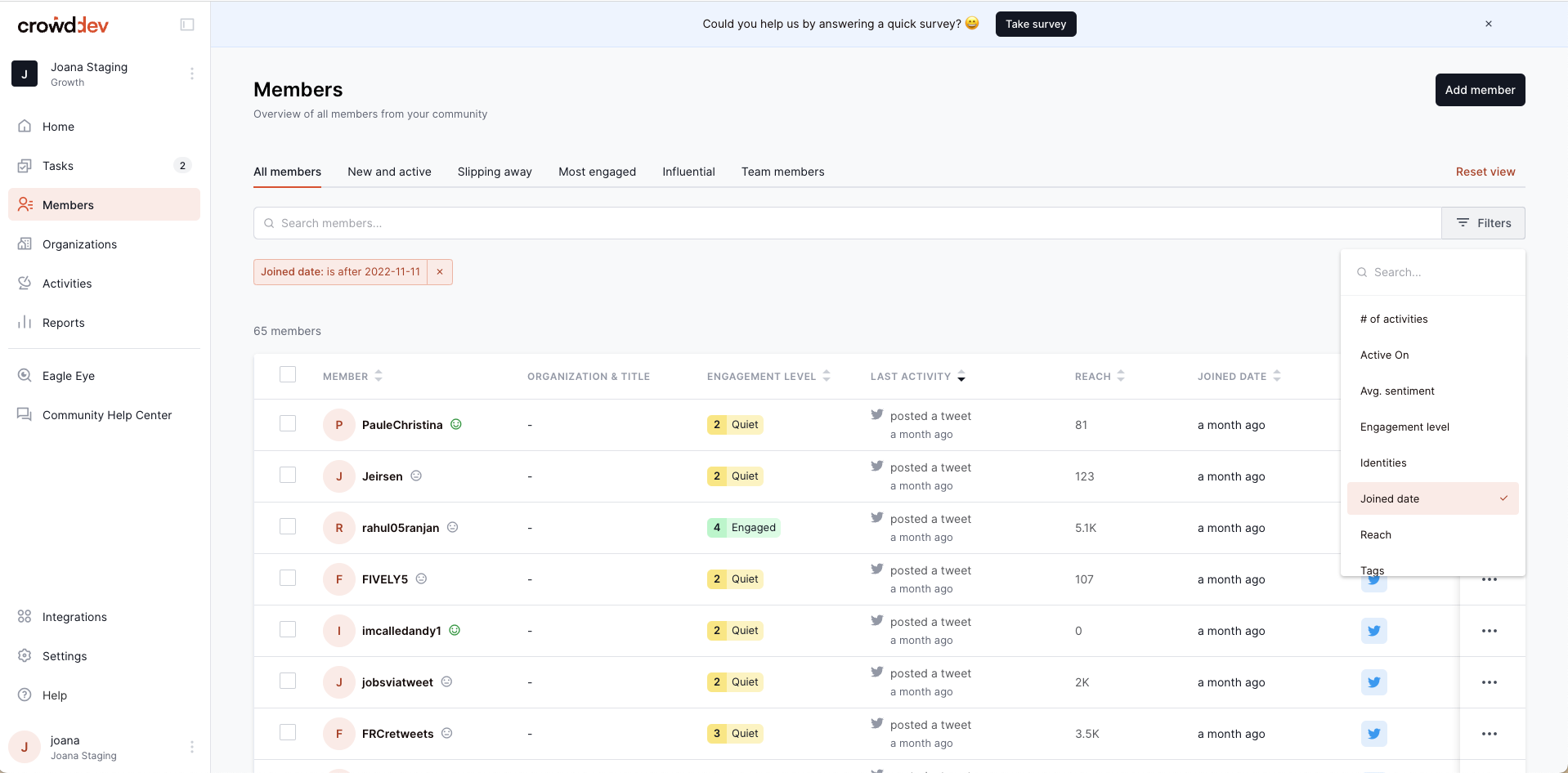 Add members joinedAt filter and column to all views#374