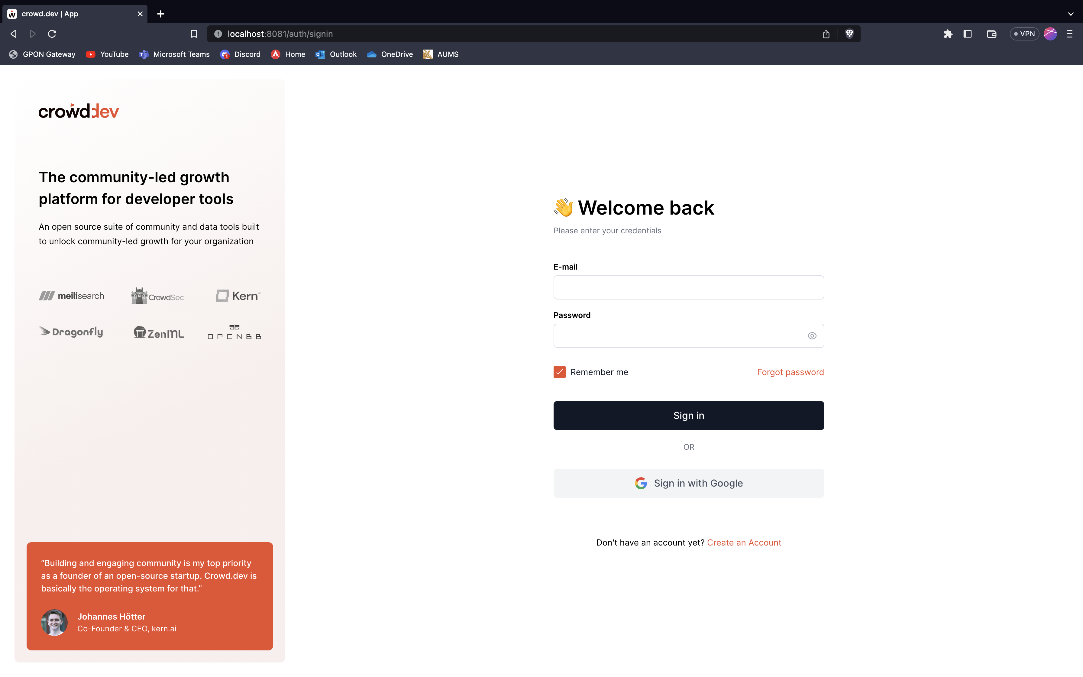 Added "Don't have an account yet? Create an account" copy to the bottom of the sign-in form on app.crowd.dev/auth/signin