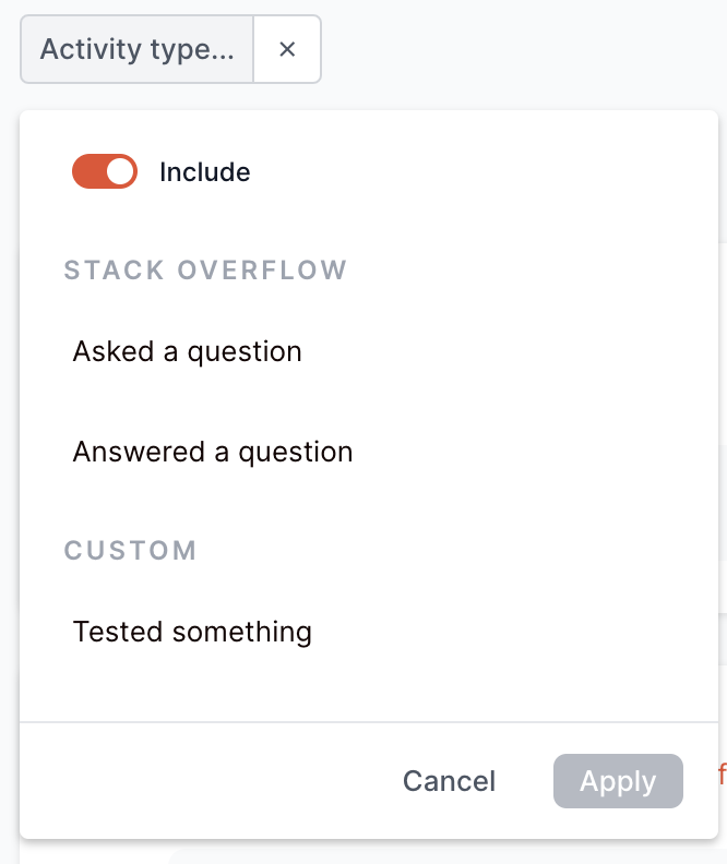 Just noticed that in the Member's page, the activity type filter does not have Custom activities in the filter. Could you also take a look at that?