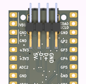 Using the provided solder pads at the back: Desolder the front "USB Jumper" resistors. They are just 2x 0 Ohm resistors that bridge between the RP2040 IC and the USB-C port. Then use a USB Type A Plug Breakout Cable, or make your own from any USB cable and connect to the existing pad at the back of PicoPD