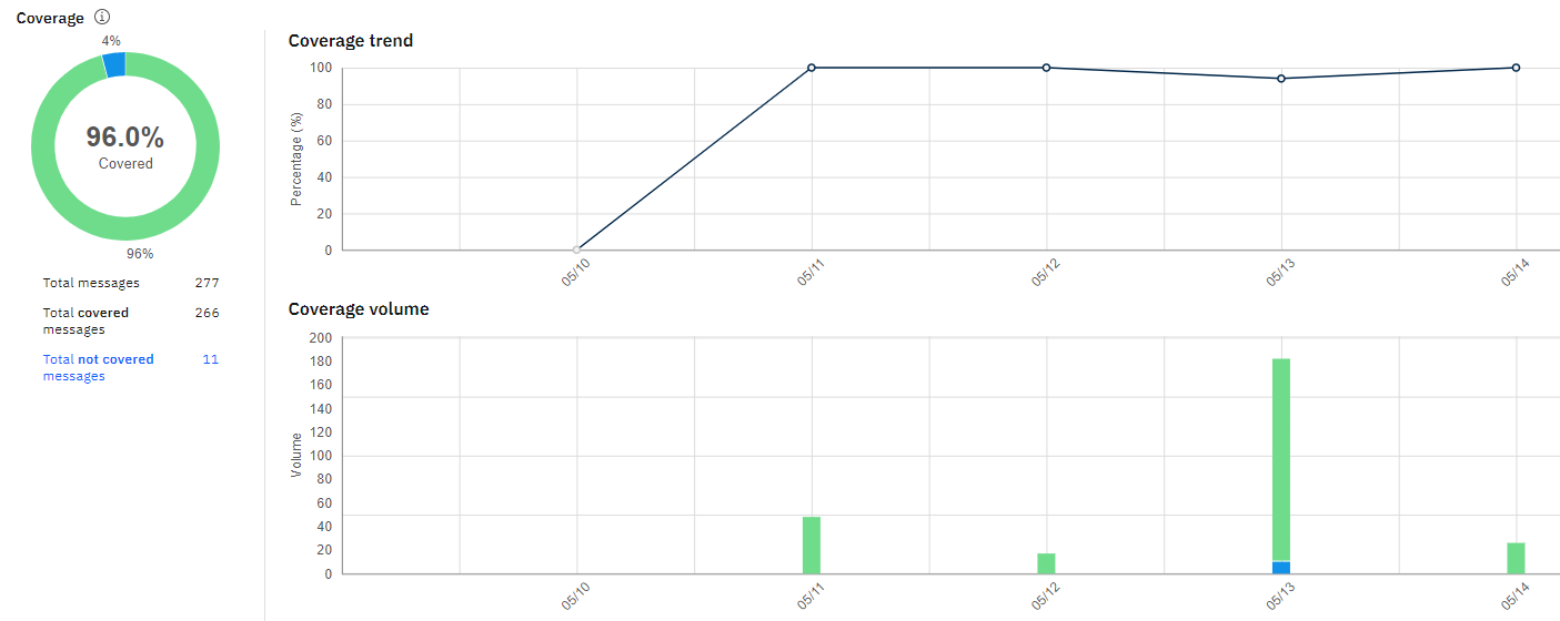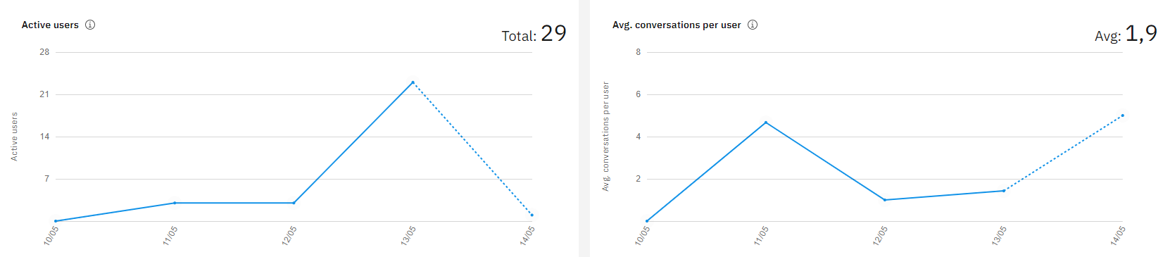 Seguem alguns gráficos estatísitcos fornecidos pelo painel de gerenciamento do IBM Watson Assistent:
