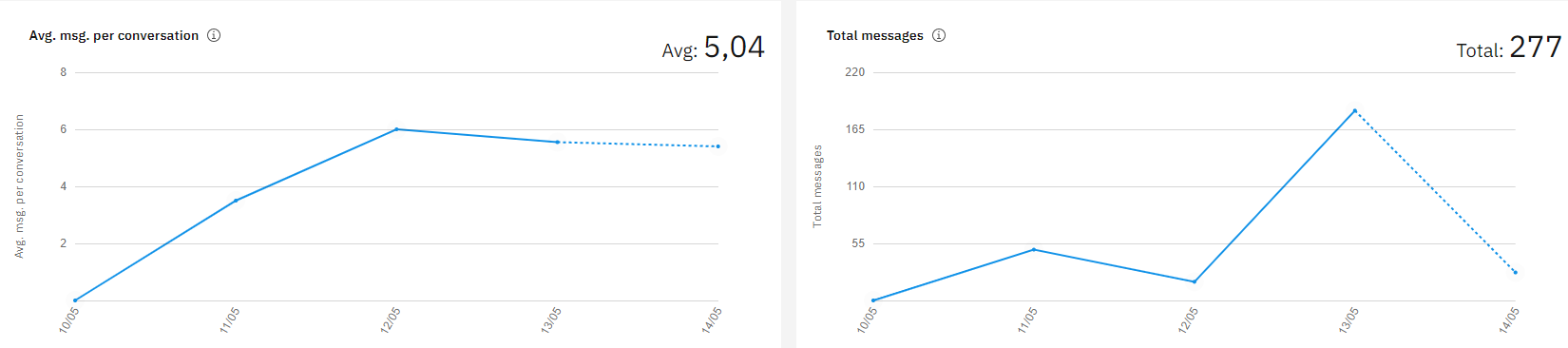 - Média de mensagens por conversa: 5,04
