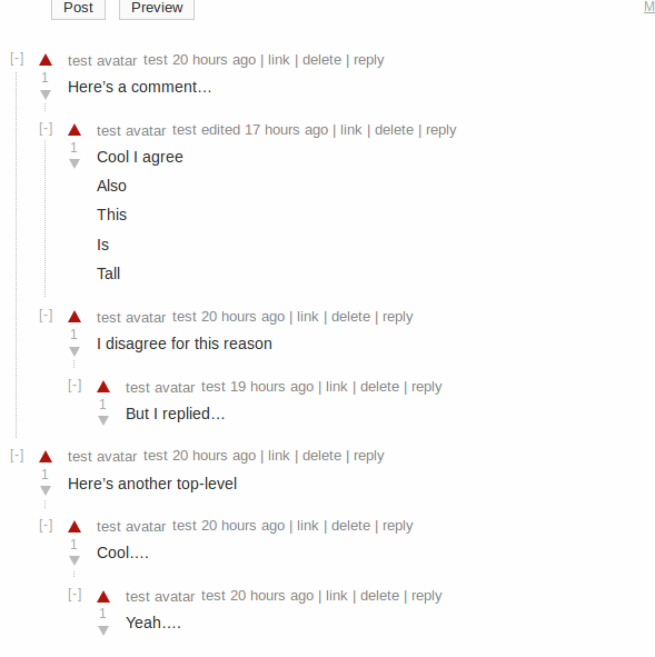 @jcs Thanks for catching that. I've pushed a commit to hide the tree lines on mobile. I think the addition of the top-level folder buttons and tree lines makes the comments section too cramped horizontally. |