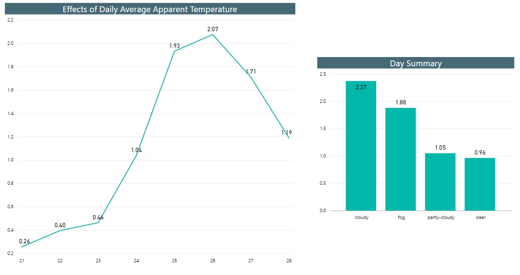 -> Used DarkSky's "apparentAverageTemp" datapoint to obtain realistic temperature levels