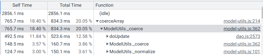 The way ModelUtils._coerce uses coerceArray is inefficient, and is causing it to show up as 20% of my application's CPU usage in profiler runs under a create heavy workload.