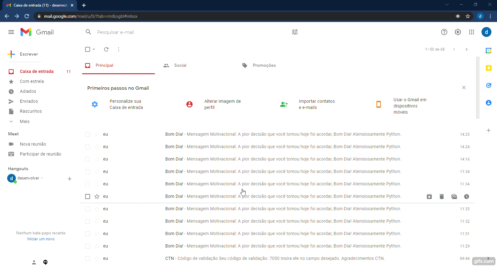 Código que envia email usando python de forma rápida feito no Jupyter Notebook, é necessário uma conta no email e a senha desse email que será o remetente para poder enviar as mensagens e o email do destinatário para poder receber as mensagens. Poderá formatar e personalizar a mensagem enviada com HTML.