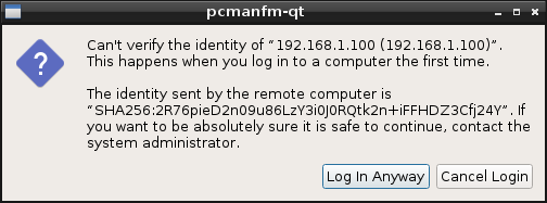 Is there any trick to access files/folders through ssh? The first time I try to do it pcmanfm-qt show me this dialog: