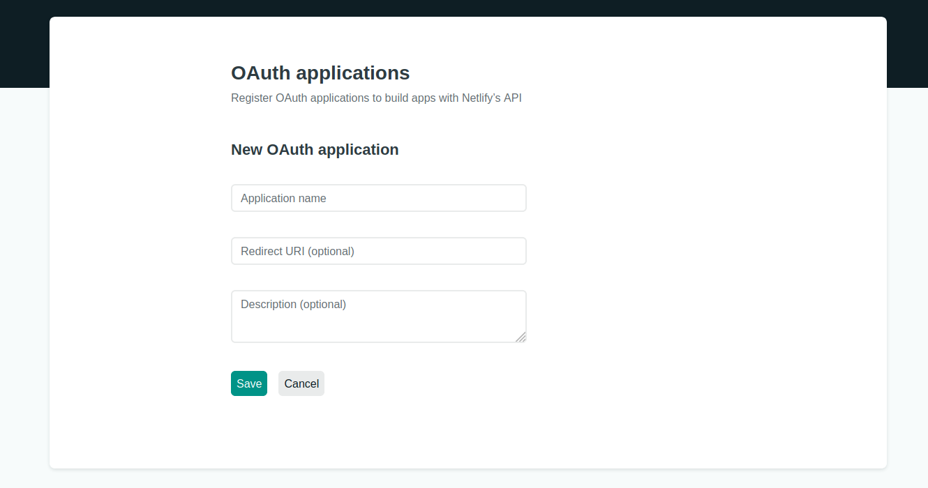 Head over to your Netlify account, and proceed to User settings. Find the tab Applications and under OAuth applications section; click on New OAuth app button.