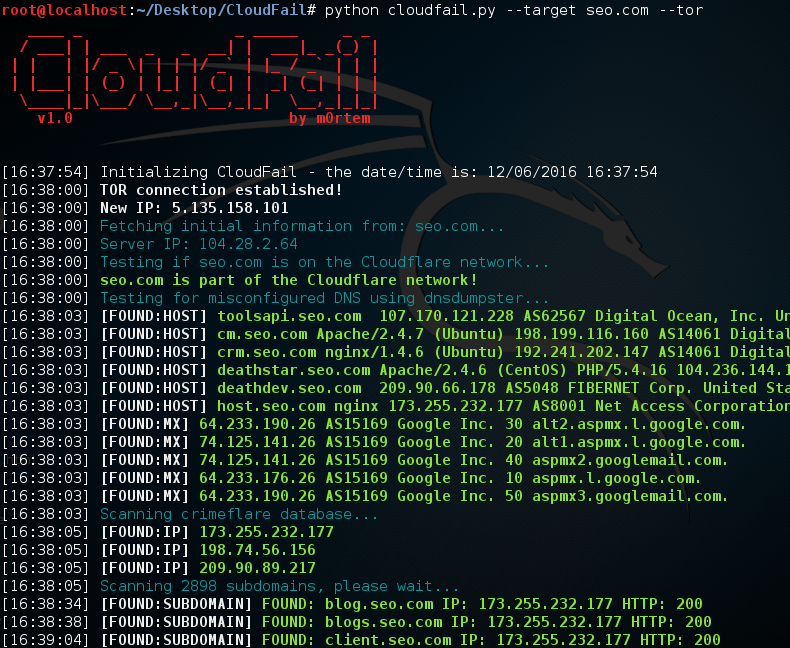 python3 cloudfail.py --target seo.com --tor