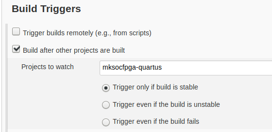 OK .. Yes the builder says jenkins :-) , whats confusing me is the references to travis here: Do these files still serve any purpose or are they outdated ? I'm thinking that the quartus qsys build error (in the DE10 Nano folder) may be some leftovers from former build attempts in a cache ? |