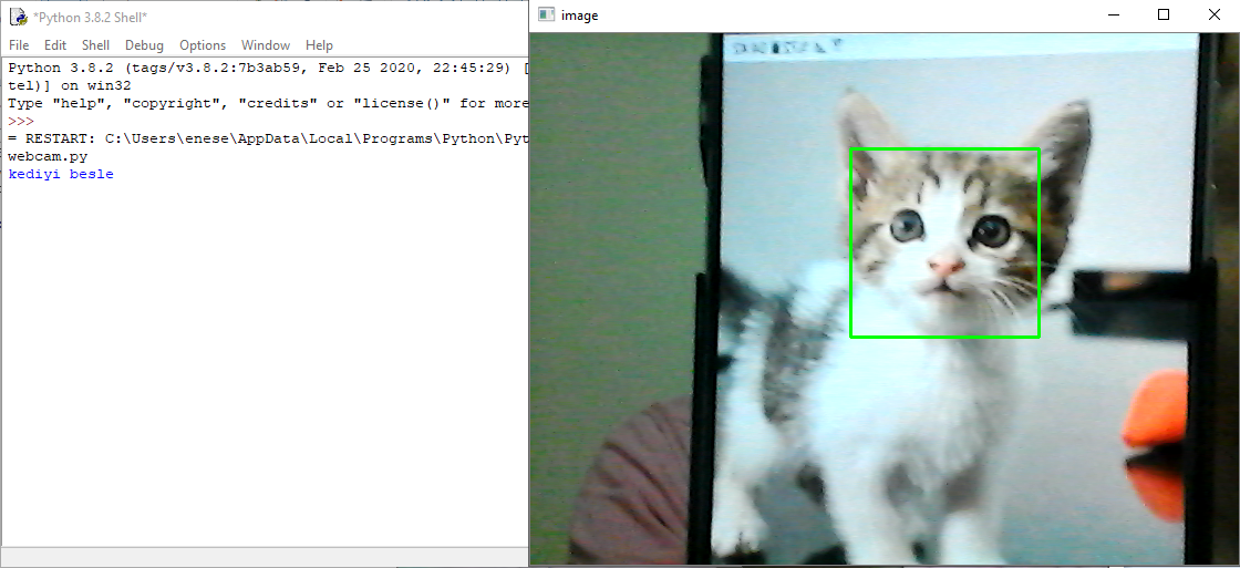 Program bilgisayar kamerası üzerinden görüntüyü alıp işlemektedir. Herhangi bir kedi algılanmadan program aşağıdaki gibi gözükmektedir: