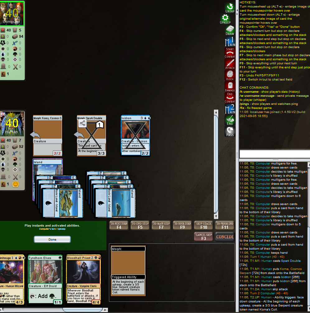 [[Spark Double]] copying [[Koma, Cosmos Serpent]] then [[Ixidron]] turns both of them face down. Koma doesn't trigger, however Spark Double is triggering and creating the tokens.