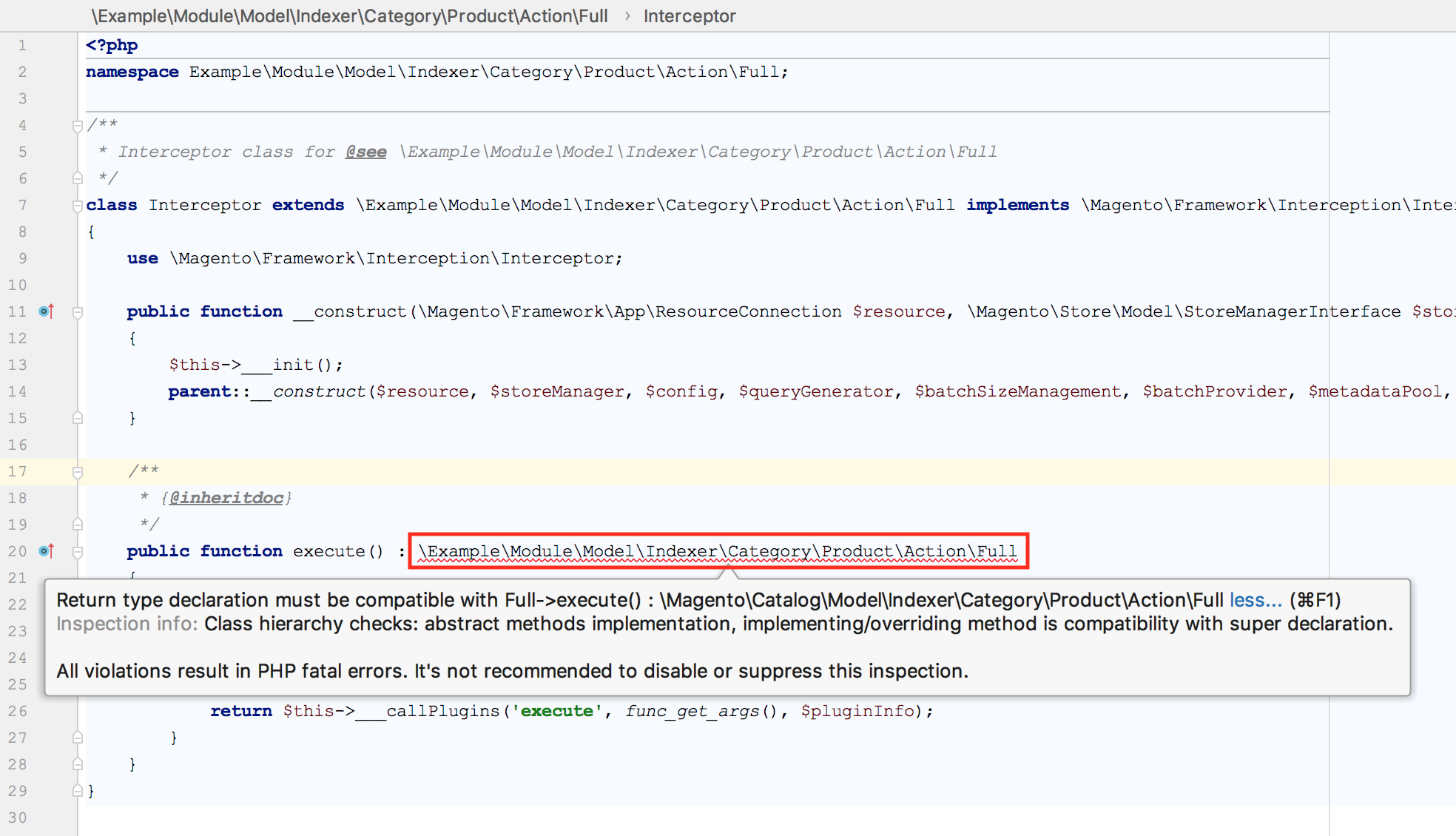 namespace Example\Module\Catalog\Model\Indexer\Category\Product\Action; class Full extends \Magento\Catalog\Model\Indexer\Category\Product\Action\Full { }