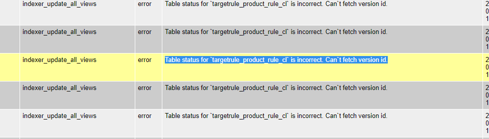 1.In my cron_schedule table i can see there is error for the indexers "Table status for targetrule_product_rule_cl