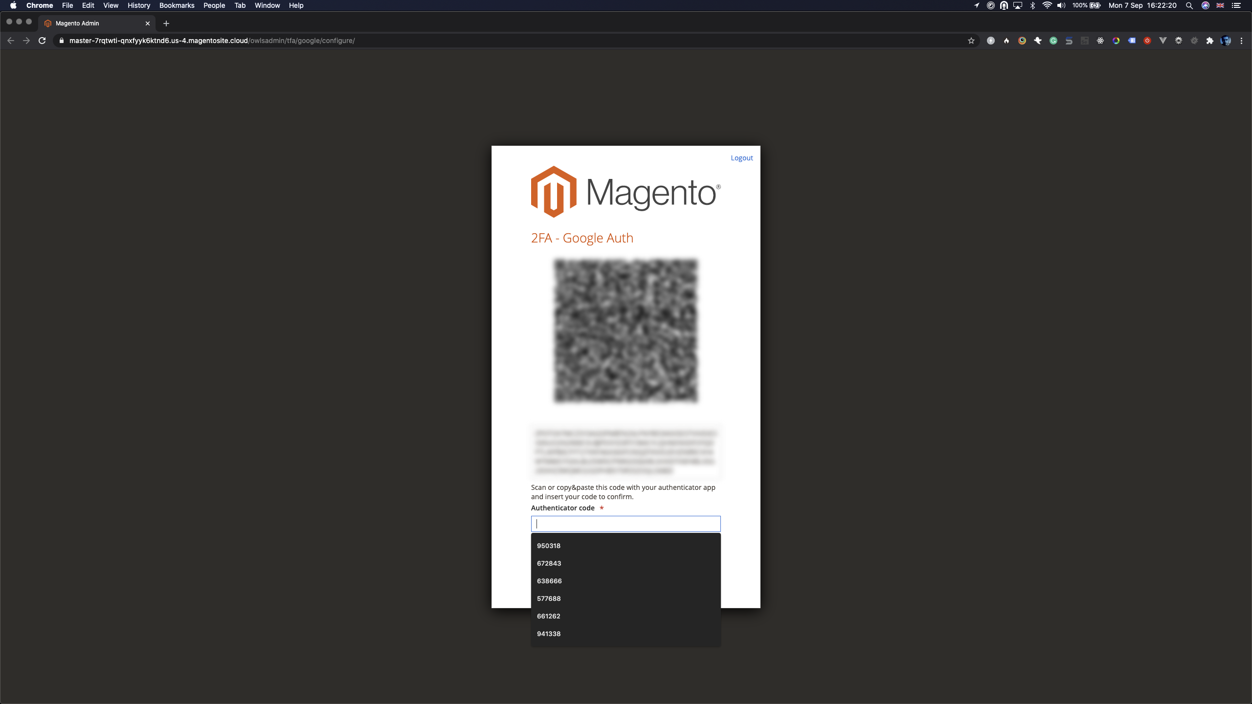 - Scan QR code or enter "Secret Code" string using your preferred 2FA application