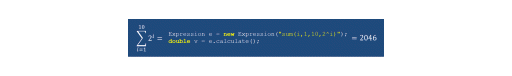 Expression e = new Expression("sum(i, 1, 10, 2*i^2 + pi)");