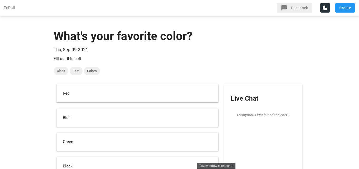 Create polls on the fly, and present them to your class! No signup required!