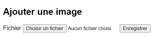 L'ajout d'image dans la base de données est possible en appuyant sur le bouton Choisir un fichier puis sur Enregistrer. Dans le cas où la taille de l'image est supérieure à celle acceptée par la base de données, un message d'erreur apparait.