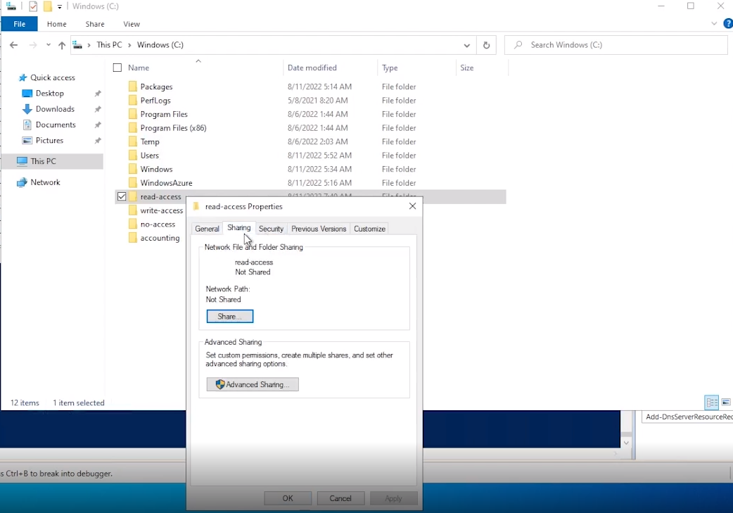 Created new folders named Read-Access, Write-Access, and No-Access.