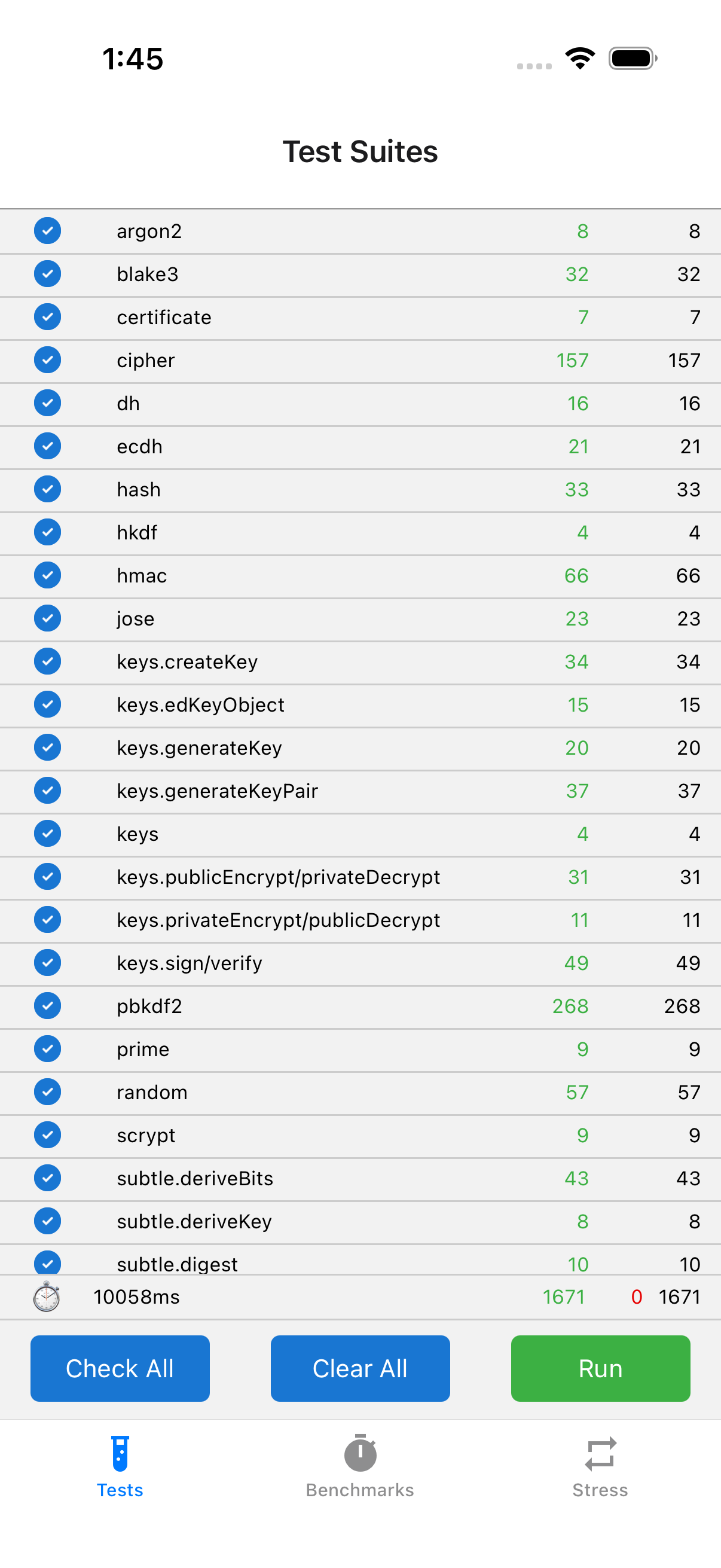 bun run exampleand run thecipher,dh,ecdh, andkeys.*test suites; verify all new and existing tests pass on iOS and Android./tmp/rnqc-metro.log) shows no failures from the 20 new regression tests across the 4 phases.xsalsa20callers viacreateCipherivnow produce different output than before for chunked update() patterns — review whether any consumers depend on the (broken) prior behavior.Notes