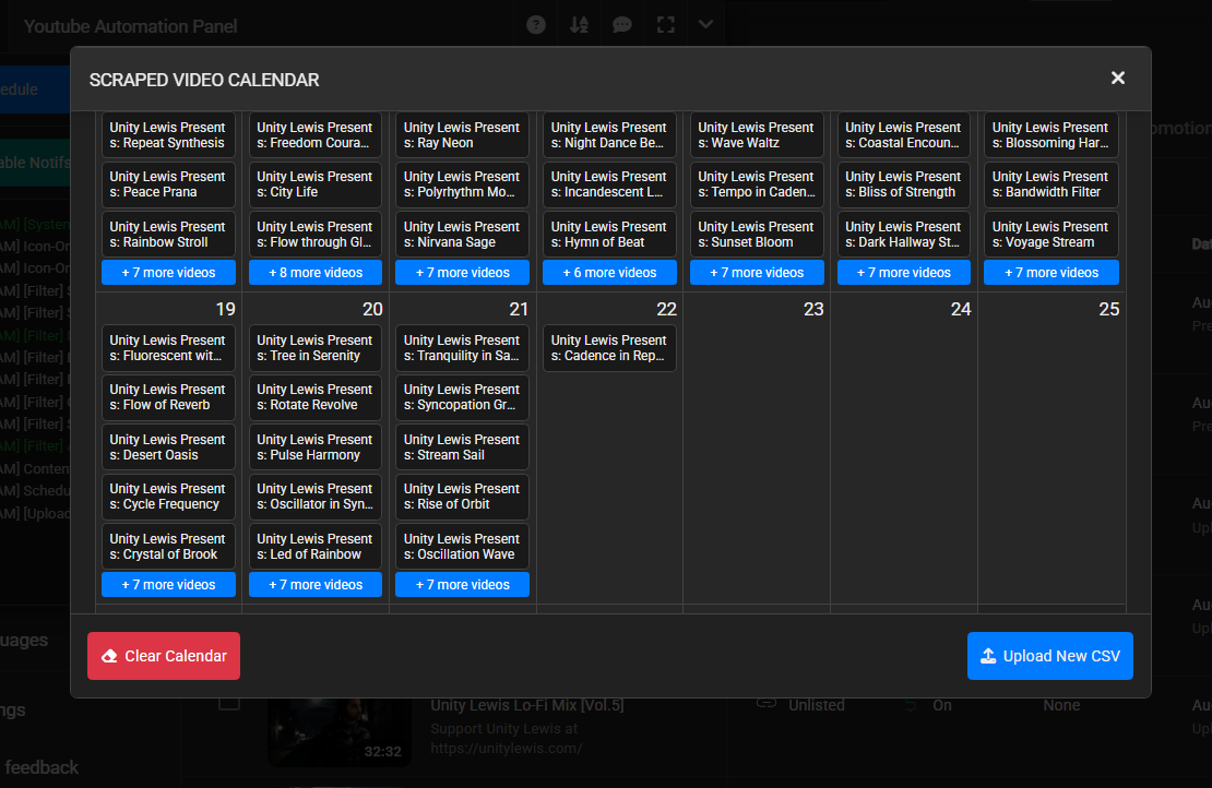 A powerful, extensible, multi-tool UserScript UI for YouTube Studio. It automates mass scheduling, renaming, notifications management, scraping, uploading, downloading, calendar sync, and more.