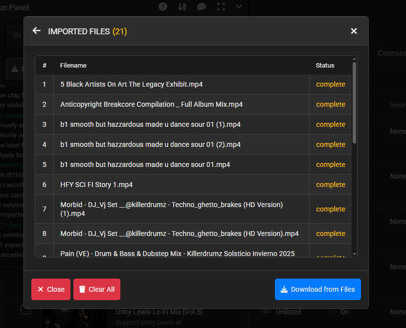 - URL Import/Export: Save or load JSON/CSV lists of videos and links.
