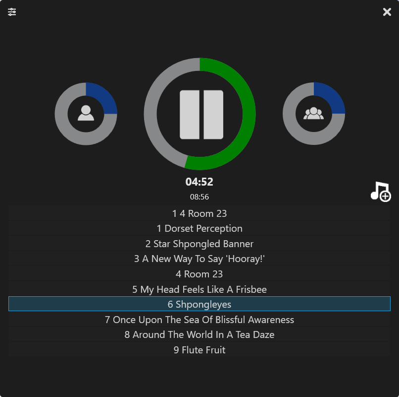 The large circular green bar in the middle is used to seek the current song. Click anywhere along the circle or drag accordingly.
