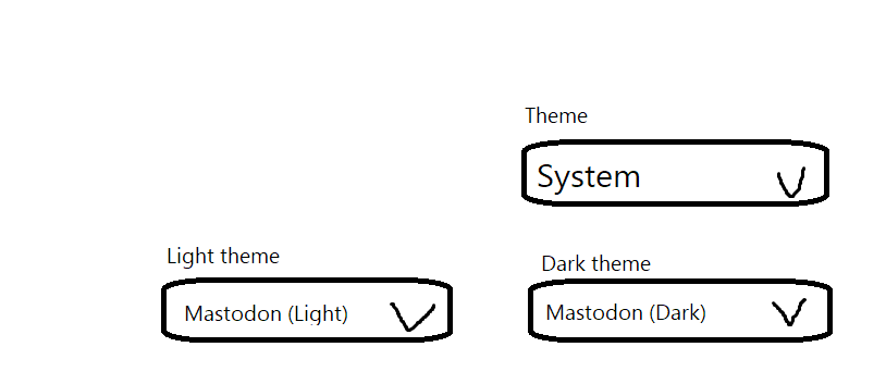 That's a great point. @Gaelan had a great proof of concept in #10976 that allowed for user-selected light/dark themes. I wasn't considering custom themes and thought that having a system theme option would be simpler, but now that I'm aware of the existence of custom themes, maybe that's a better approach. @ClearlyClaire would having explicit, user-selected light/dark themes make it easier for forks like glitch-soc to pull from upstream? |