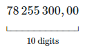 \mathop{\underset{\mmlToken{mo}{⎵}}{78\,255\,300,00}}\limits_{10\text{ digits}}MJv2: