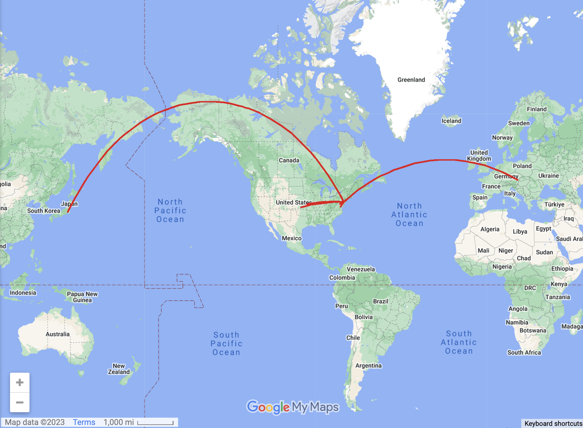 The example packet capture (samplePacketCapture.pcap), when converted into a KML file via the tool, produces the below map: