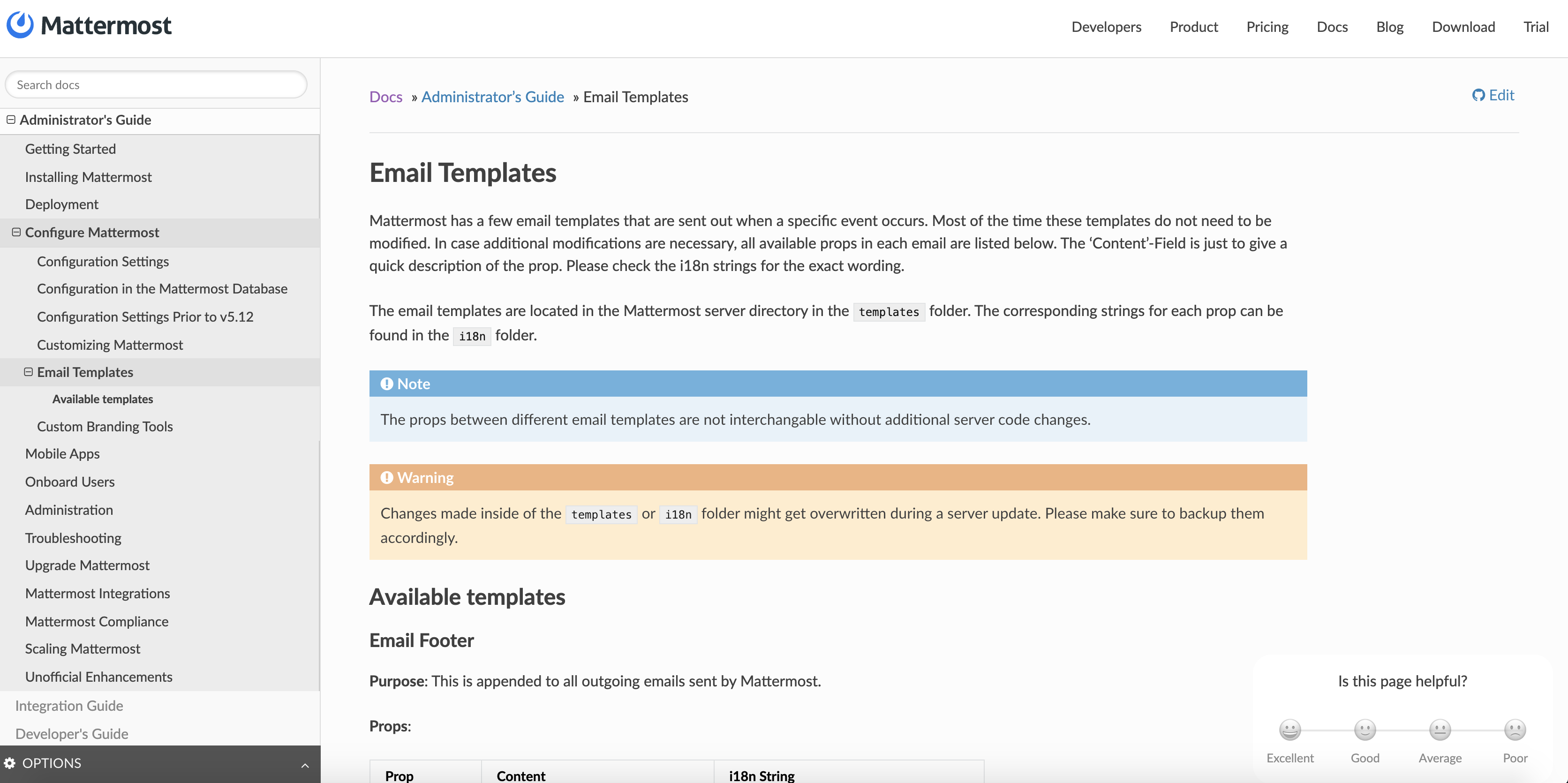 …/docs into justinegeffen-patch-7 * 'justinegeffen-patch-7' of https://github.com/mattermost/docs: (90 commits) Update integrations.rst Remove Oracle from Bitnami packages (#3491) Revert "Adding NPS rating for docs pages (#3469)" (#3495) Add Plugin Labels and Prepackaged Plugin Info (#3395) Adding NPS rating for docs pages (#3469) Fix broken link in Bot Account Creation > Plugin (#3493) Added Let's Encrypt clarification (#2866) Update security.rst (#3434) Update sg_grammar-spelling-mechanics.rst (#3462) Update training.rst (#3485) Update release-faq.rst (#3484) Documenting how to change the default docker-compose network (#3480) Fixes GH-542-Moved : Request for Documentation: Add to interactive-messages documentation (#3482) Correct Code Block Formatting (#3477) Update mmctl-cli-tool.rst (#3481) FAQ on Archived Channels and data retention (#3470) Update desktop-changelog.rst (#3473) Update desktop-changelog.rst (#3471) Added Video to AD/LDAP Group Sync (#3450) Hint to `"skip_slack_parsing"` to ignore Slack-compatibility logic (#3427) ... # Conflicts: # source/install/troubleshooting.rst