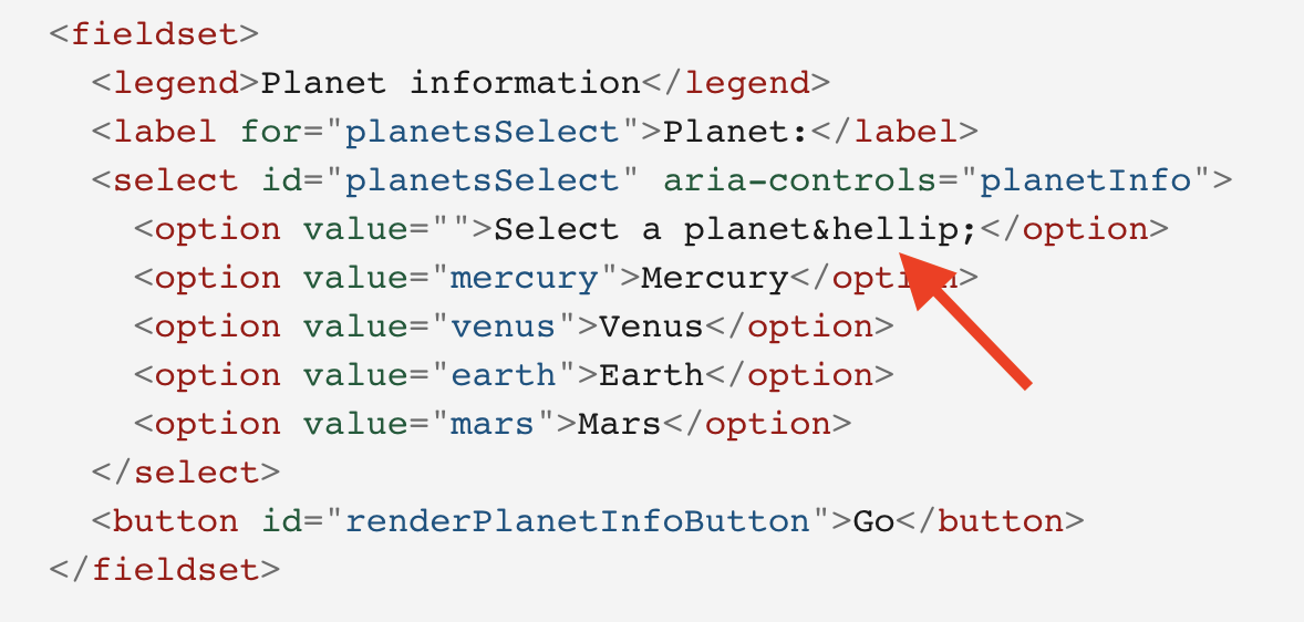 The HTML entity for ellipsis in the following code block is not encoded correctly. This PR addresses the issue by replacing it with a simple ellipsis.
