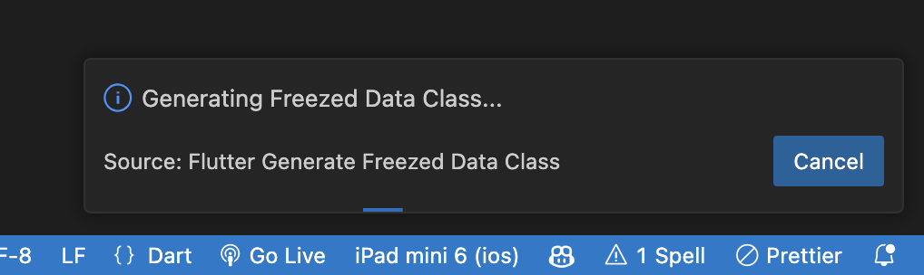 Flutter Generate Freezed Data Class extension for VSCode Generate Freezed Data Class by run build_runner in specific folder. Right click on folder. Select Generate Freezed Data Class.