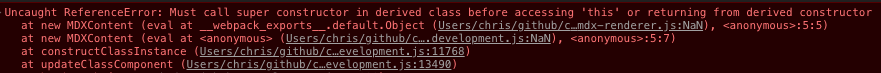 I think I forgot a `super()` in the MDXContent class from #309. Not sure why it didn't pop up before when running tests, etc.