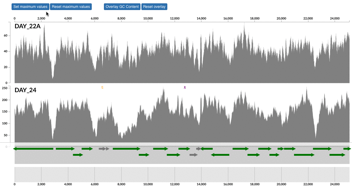 The 'max coverage' fix we all needed but didn't know. Inspection pages are great to investigate coverage data and single-nucleotide variants in a single-nucleotide resolution, however, it was not quite easy to make visual sense of data when coverage values dramatically differed between samples, or short but non-specific mapping pushed maximum coverage values too high to make sense of the actual population coverage in the context of long contigs. In v4 you will see additional buttons in the inspection pages to mitigate these kinds of visual imperfections. Here is some action for you skeptics: