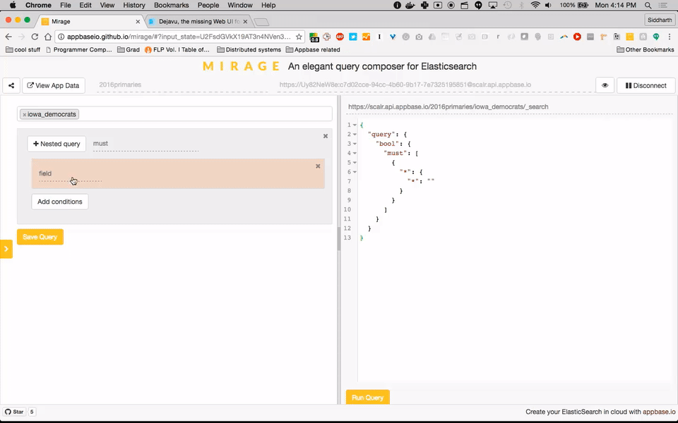 Every app in appbase.io has a query explorer view, which uses mirage.
