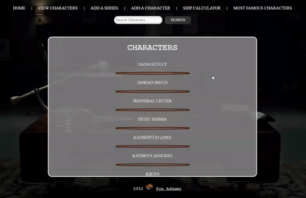My App was created for a user to organise and manage their favourite fictional characters, including some basic information about each character. Within this App it was important to include CRUD functionality to organise and maintain the collection. I began by cloning the existing project repository onto my computer via PyCharm, Git, and Azure DevOps. While working on this project I used a virtual environment of Django 2.2.5, beautifulsoup4 4.8.0, and more. I began by creating a basic app, with a navbar, background, title and footer.