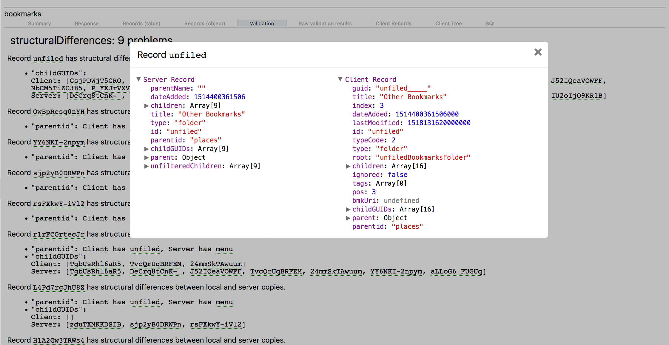 Additionally, when there's a validation problem type we don't have display code for, it will report it and show it in a table view. This showed me that we didn't have display code for deletedChildren prior to this (although we do now).