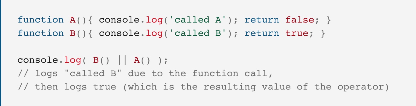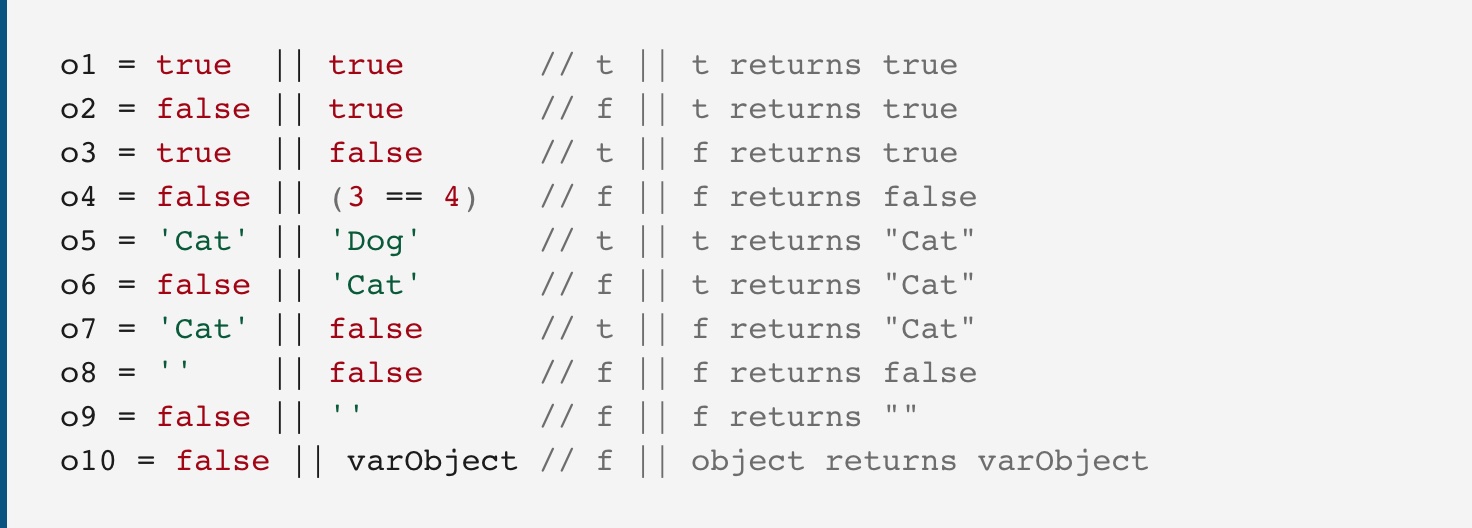Descriptions & Code snippets from: https://developer.mozilla.org/en-US/docs/Web/JavaScript/Reference/Operators/Logical_OR