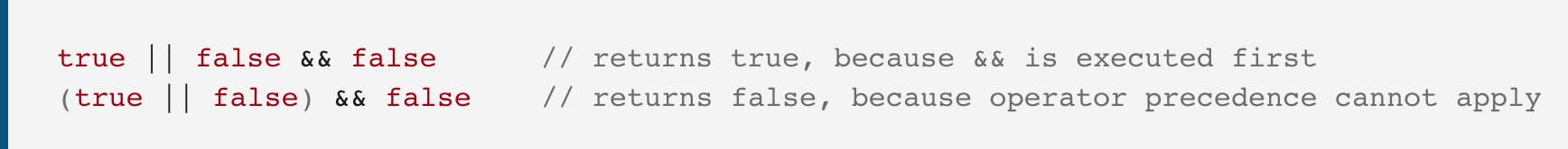 The following expressions might seem equivalent, but they are not, because the && operator is executed before the || operator