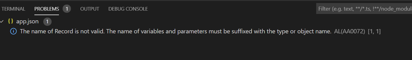 Warning AA0022 in line 1 of app.json when a codeunit have the parameter TableNo